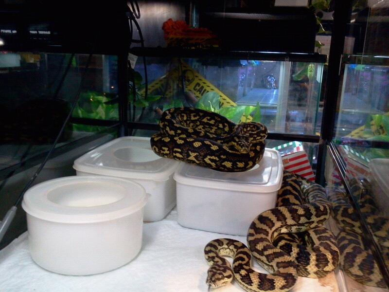 その他にも、イリアンジャカーペットパイソン♀繁殖サイズやタニンバーパイソンアダルトペアー等々