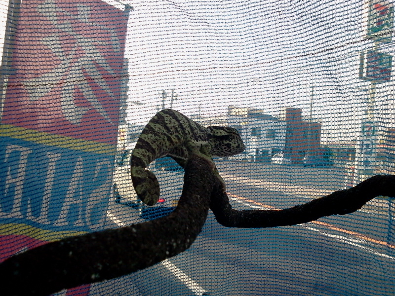 日光浴中のセネガルカメレオン