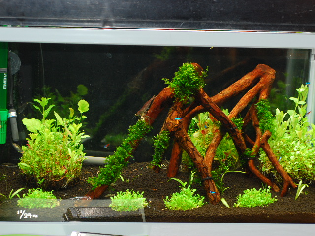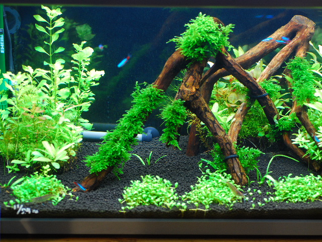 セット後水作りで約1ヶ月待ち流木を選び組み合わせてモスを巻き