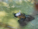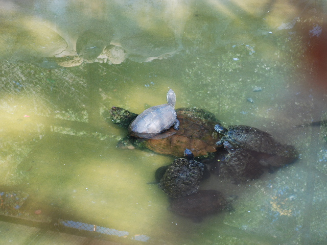 ワニガメとミドリガメとクサガメの仲良し風景
